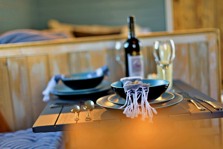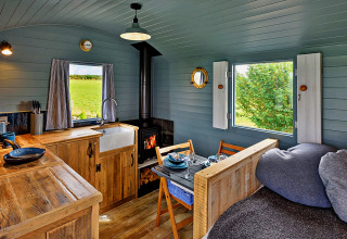 Avrai il tuo tavolo e posti a sedere sia all’interno che all’esterno, oltre a un parcheggio privato proprio dietro il capanno. Il sito ospita in totale cinque capanni da pastore artigianali, ognuno con il proprio carattere e un interno eclettico, ma conserverai sempre una sensazione di privacy e isolamento. Con un soggiorno minimo di tre notti, questo è il luogo ideale per rallentare davvero, riconnettervi e godere della natura secondo i vostri ritmi.