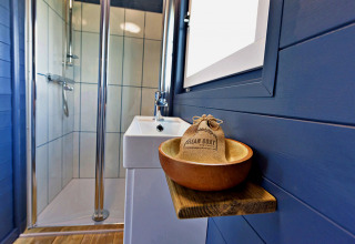 All’interno, il capanno è elegante, accogliente e pensato per le coppie. C’è un comodo letto matrimoniale, una cucina completamente attrezzata con forno, piano cottura, frigorifero-congelatore e un classico lavello Belfast, così puoi preparare facilmente i tuoi piatti preferiti. Il moderno bagno privato con doccia offre prodotti ecologici e uno scaldasalviette, per restare al caldo e coccolati dopo una giornata all’aperto.