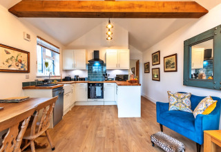 L’area soggiorno open-space è pensata per giornate lente e serate pigre. Rannicchiati sul divano a guardare i tuoi programmi preferiti sulla TV Freeview o siediti al tavolo da pranzo per gustare un pasto preparato in casa. La cucina completamente attrezzata – con forno elettrico, piano cottura a induzione, microonde, frigorifero e lavastoviglie – ha tutto ciò di cui hai bisogno per una vacanza autonoma e senza pensieri.