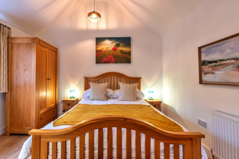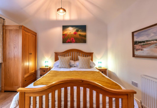 All'interno troverai una spaziosa camera da letto con un lussuoso letto matrimoniale king-size, dove potrai davvero rilassarti dopo una giornata di esplorazione. Il bagno en-suite dispone di una moderna doccia a pioggia, così da poterti rinfrescare comodamente. Tutto è su un unico livello, rendendo il soggiorno facile e rilassante fin dal momento dell'arrivo.
