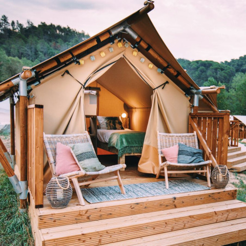 Can Bora Lodges si trova immersa nella natura, tra boschi e colline in Catalogna. I lodge in legno sono sparsi nella proprietà e si affacciano sul verde. Dal tuo alloggio puoi facilmente esplorare la zona a piedi o in bicicletta. Nel parco troverai una piscina e una terrazza presso il Café Can Bora. Nelle vicinanze ci sono fiumi, cascate e piccoli villaggi. Anche Girona e la Costa Brava sono facilmente raggiungibili. All'interno e intorno al parco l'attenzione è rivolta alla vita all'aperto, con attività come kayak, canyoning e trekking.