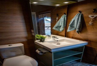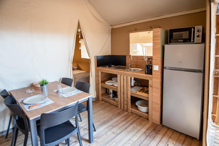 All'interno troverai tutto ciò di cui hai bisogno per una vacanza senza pensieri, inclusi i comfort basilari come un microonde per pasti o spuntini veloci. L’atmosfera nel campeggio è amichevole e distesa, con tanto spazio per i bambini che vogliono giocare ed esplorare. Durante luglio e agosto, la spiaggia è sorvegliata, il che è particolarmente rassicurante se viaggi con bambini e vuoi che giochino in sicurezza tra le onde.