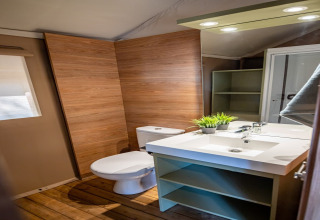Questo accogliente cottage è progettato per ospitare fino a sei persone ed è una scelta eccellente per famiglie o gruppi di amici. Con due camere da letto confortevoli e 29 m² di spazio ben organizzato, ti sentirai subito a casa. C'è un giardino privato dove puoi gustare la colazione al sole o concederti un drink rilassante alla sera, oltre a un parcheggio privato all’interno del campeggio così non dovrai mai preoccuparti per la tua auto.