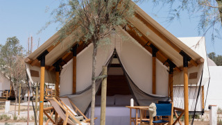 Progettata appositamente per le famiglie numerose che desiderano combinare lusso e natura, la Glamping Family+ offre spazio, comfort e flessibilità. Questa ampia tenda può ospitare fino a sei persone, con un letto matrimoniale (1,60 m) nella camera principale, un soppalco con un altro letto matrimoniale (1,40 m) e due letti singoli separati (80 cm). Tutte le camere da letto sono dotate di aria condizionata.