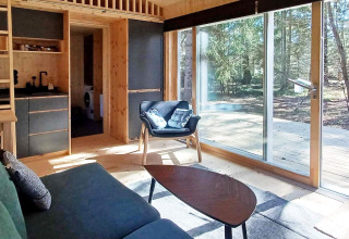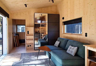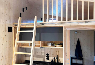 Il cottage dispone di una camera da letto accogliente con un comodo letto matrimoniale da 140 cm, ideale per coppie o viaggiatori singoli. Nel soggiorno troverai due poltrone per serate rilassate con un libro, una bevanda o un gioco da tavolo. Sopra l’area cucina c’è un soppalco con due posti letto extra – un rifugio accogliente dove ritirarsi, leggere o semplicemente goderti momenti di tranquillità.