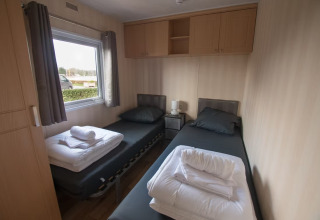 Geniet van een verblijf vol kampeercharme in deze gezellige stacaravan, ideaal gelegen in het hart van het park en geschikt voor maximaal zes personen. Binnenin beschikt de accommodatie over een comfortabele leefruimte met een flatscreentelevisie, drie aparte slaapkamers en een uitgeruste keuken met koelkast, microgolfoven, waterkoker en een koffiezetapparaat. Je beschikt ook over het gemak van een privébadkamer met douche en wastafel, plus gratis wifi en verwarming voor de koelere dagen. Buiten is het terras met tuintafel en stoelen de ideale plek om te ontspannen met zicht op de minigolf, het strand of het voetbalveld. Huisdieren zijn ook welkom, dus het hele gezin kan mee genieten van de pret!