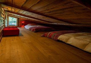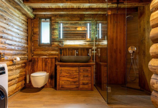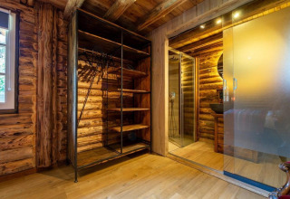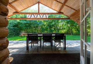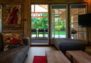 Buiten is het overdekte terras echt je buitenliving. Met een mooie tuinset begin je hier de dag met fluitende vogels en sluit je hem af met een drankje onder de sterren, helemaal omringd door de natuur, maar toch beschut. Vlak aan het chalet is er privéparking voor twee wagens, dus je bent snel geïnstalleerd en hoeft niet ver te sleuren.