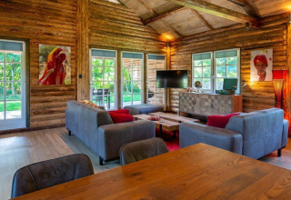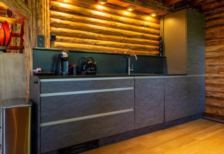 Binnen is het chalet licht, stijlvol en comfortabel ingericht. De open leefruimte heeft grote ramen die veel daglicht en zicht op het groen buiten binnenbrengen – ideaal voor uitgebreide ontbijten, spelletjesavonden of gewoon gezellig samenzijn. De moderne keuken is volledig uitgerust met een gasvuur, oven, grote koelkast met vriesvak, vaatwasser, waterkoker en een Dolce Gusto koffiemachine. Samen koken is hier makkelijk én plezant.