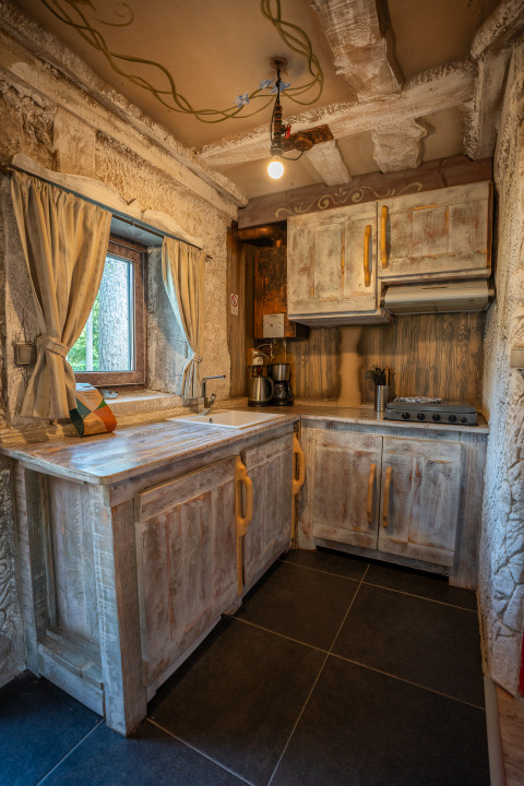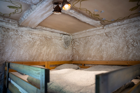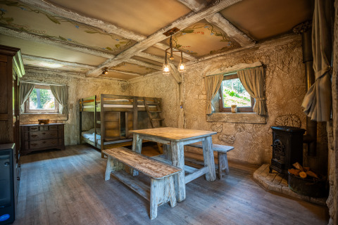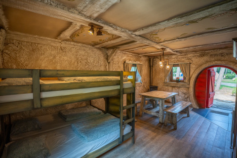 Kamperen in dit volledig ingericht Hobbit huisje is echt een wonderlijke ervaring. Zodra je binnenkomt, lijkt het alsof je recht een sprookjeswereld in stapt. Het knusse huisje staat op het familieveld, perfect voor gezinnen die willen genieten van rust, natuur en quality time samen. Vanuit het huisje of vanop het terras kan je uitkijken op het veld, waar de kinderen vrij kunnen spelen en op ontdekking gaan.
