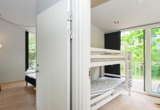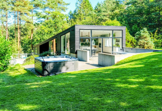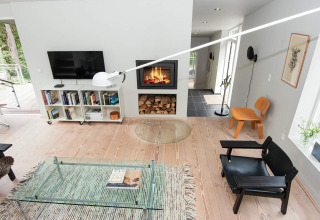 Binnen is het huis licht, ruim en doordacht ingericht. De grote open keuken, eet- en leefruimte vormen het sociale hart van het huis. Kook samen in de fantastische, volledig uitgeruste keuken en zak daarna onderuit in de gezellige zithoek met een glaasje wijn terwijl je uitkijkt op het groen door de enorme ramen. De natuur is altijd vlakbij – je kijkt zo het bos in vanuit de gezellige woonkamer.