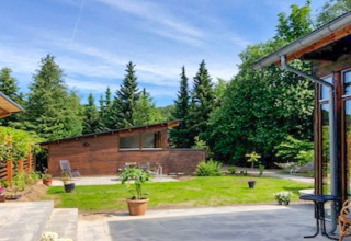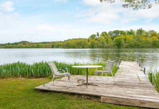 Buiten begint de echte magie pas. In de tuin vind je een groot houten terras met een fantastisch uitzicht op Bryrup Langsø – de ideale plek voor een kopje koffie bij zonsopgang of een drankje bij zonsondergang. Van hieruit wandel je zo naar je eigen privé-steiger. Neem een verfrissende duik, ga suppen of bengel gewoon met je voeten in het water terwijl je geniet van de stilte.