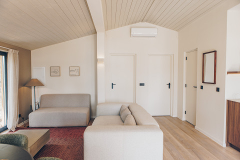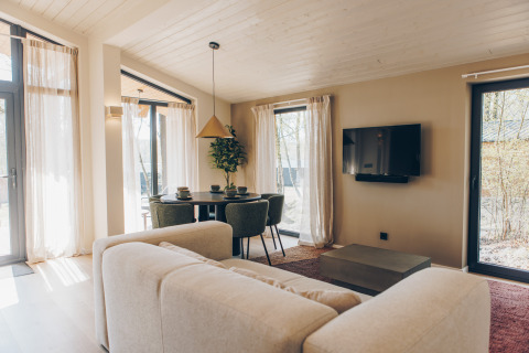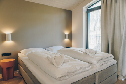 Na een dag buiten kom je helemaal tot rust in je eigen hottub, met uitzicht op het meer en de groene omgeving. De comfortabele vakantiewoning van ongeveer 56 m² is geschikt voor 5 personen en heeft een ruime veranda, twee slaapkamers, een moderne badkamer en een lichtrijke woon- en eetruimte met zithoek. De master bedroom is voorzien van een tweepersoonsbed, de tweede slaapkamer telt drie eenpersoonsbedden waarvan één een hoogslaper is. De volledig uitgeruste keuken en het terras maken het verblijf compleet. Tijdens je verblijf kan je onbeperkt gebruik maken van alle faciliteiten op het domein. Welkom bij de Hill Side Scandi met hottub: een zalige uitvalsbasis middenin de natuur.