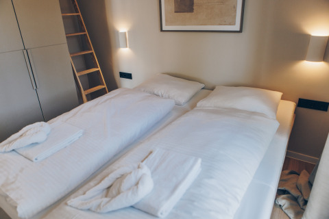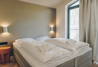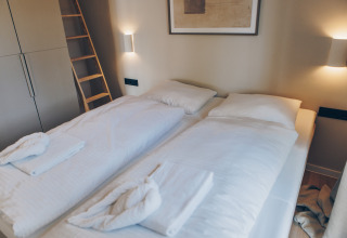 - Beddengoed met opgemaakte bedden bij aankomst