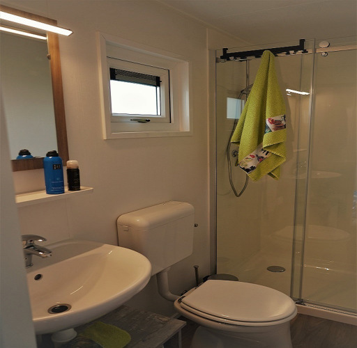 Dit chalet is voorzien van een praktisch ingerichte keuken met o.a. een koffiezetapparaat, koelvriescombinatie en 4-pitsgasfornuis. De badkamer beschikt over een douche, toilet en wastafel.