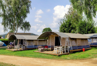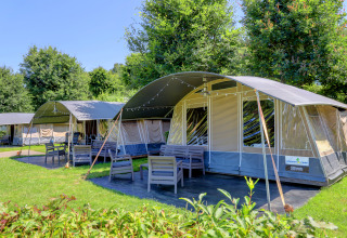 De Lodge de Luxe geeft je dat echte kampeergevoel, maar dan met het comfortabele van een loungeset, een boxspringbed en extra kastruimte. Door de vele ramen is de tent zalig licht, waardoor je zelfs binnen volop van het buitenleven geniet. Kies je voor de Lodge de Luxe, dan kies je voor extra comfortabel kamperen.