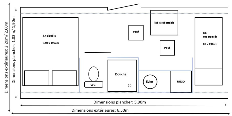 Er zijn twee aparte slaapkamers, één met een tweepersoonsbed en één met een stapelbed. In de compacte keuken vind je een gootsteen, een koelkast met vriesvak, een elektrische kookplaat, microgolfoven, koffiezetapparaat en al het nodige servies. De badkamer is uitgerust met een douche en een toilet. Buiten is er een terras van vijf vierkante meter met tuinmeubelen en een ligzetel – ideaal om te genieten van het uitzicht op de bergen en de yurts. Je verblijft op een ruime plek van 150 m² waar één huisdier welkom is tegen betaling van een toeslag. Je kan parkeren bij de hut, maar om veiligheidsredenen is het opladen van elektrische voertuigen niet toegestaan.