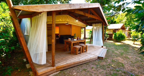 Ja, bij Camping Merendella vind je laadpunt elektrische auto.Is roken toegestaan in Tent Lodge Riada?