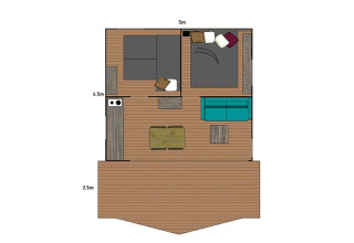 Het chalet beschikt over twee slaapkamers: één slaapkamer met een comfortabel tweepersoonsbed (160x200 cm) en één slaapkamer met een eenpersoonsbed (80 cm) en een hoogslaper, ideaal voor gezinnen. In de woonkamer staat er ook nog een slaapzetel.