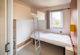 Met twee slaapkamers biedt het chalet comfortabel plaats aan vier personen. Er is een gezellige tweepersoonskamer voor een zalige nachtrust, en een tweede kamer met een stapelbed waar de kinderen dol op zullen zijn. De badkamer is aangepast voor gasten met minder mobiliteit, wat het verblijf extra comfortabel en toegankelijk maakt.