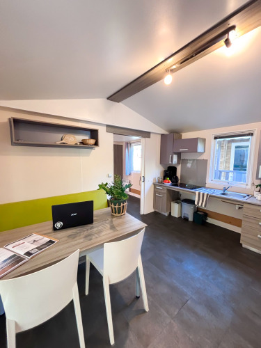 Stacaravan Confort geschikt voor mindervaliden is uitgerust met wifi (kosteloos). Het park biedt kosteloos wifi in de gemeenschappelijke ruimte(s).Is er een campingwinkel in Camping Demoiselles Plage?