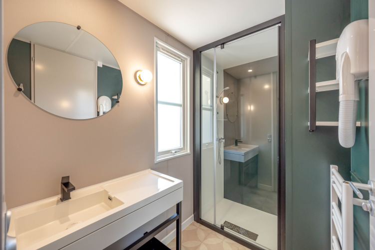 Gelegen in de autovrije zone "Côté Jardin", met als innovatief concept een buitenbad – ideaal na een dagje aan zee of om de kinderen in alle rust te laten plonzen. Dicht bij de animatie en de activiteiten, alles ligt op wandelafstand zodat je ten volle van je vakantie kan genieten.