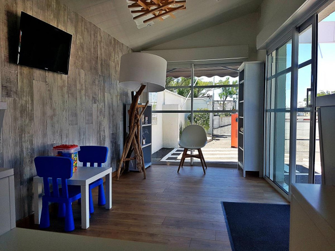 De camping is rustig en zeer aangenaam, en de stacaravanplaats was top. Het zwembad is geweldig en de faciliteiten ernaast ook. De stacaravan daarentegen was oud, met gebreken de deur was ingewikkeld om te sluiten wat ons soms irriteerde om 10 minuten te blijven proberen om te sluiten. De matrassen waren niet erg comfortabel. En de schoonmaak was niet gedaan toen we aankwamen of "snel" er zat haar op de douchekop en ook in de kamer, een berg stof op de meubels etc. De kookplaten waren moeilijk aan te zetten. En de tv-aanvulling verbaasde me... we hebben altijd gratis tv gehad... nou ja, dat gezegd hebbende, het is niet het belangrijkste op vakantie. Voor de rest is de buitenruimte erg schoon. ☺️