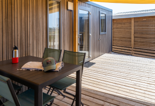 Verder heeft de stacaravan een televisie met Franse zenders en is er gratis publieke wifi beschikbaar. Buiten vind je een half-overdekt terras met een tuintafel en tuinstoelen.