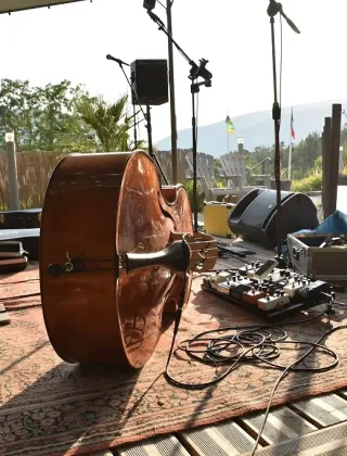 Op de veranda kan je ontspannen op twee loungebanken of in de hangmat. Op de kampeerplaats staat bovendien een houten eettafel met banken en twee verstelbare kampeerstoelen. De tent heeft geen eigen badkamer; je gebruikt de sanitaire voorzieningen van de camping. Dankzij de ruime veranda en de faciliteiten buiten draait het hier echt om het buitenleven.