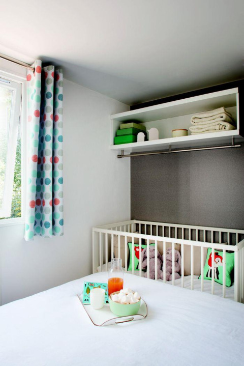 Je moet je eigen handdoeken meenemen of ze bijboeken.Kan ik een babybedje bijboeken in Stacaravan ECO Lodgia?