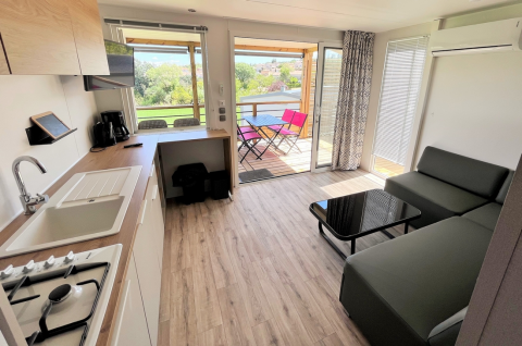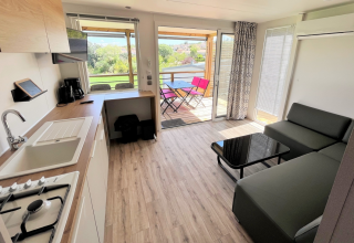 Deze stacaravan met een prachtig uitzicht is een ideale plek voor een ontspannen verblijf. De accommodatie is uitgerust met airco en een televisie, zodat je ook tijdens warme dagen comfortabel van je vakantie kunt genieten. Honden zijn optioneel toegestaan.