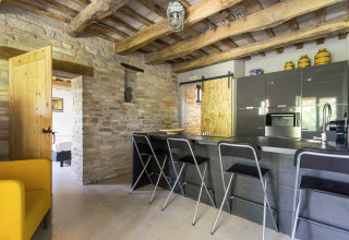 Ontspan in de ruime buitenlounge, overdekt en sfeervol ingericht op de plek waar vroeger de varkensstal was, met uitzicht over het domein. Neem een drankje uit de zelfbedieningsbar, gebruik de gratis wifi of maak kennis met andere gasten. Spring in het zwembad van 6 x 12 meter, omgeven door ligbedden en parasols, met fris, zoutwater dat zacht is voor huid en luchtwegen. Doe aan sport in de buiten-gym met roeitoestel, spinningfiets, gewichten en yogamatjes, en neem daarna een verfrissende buitendouche. Speel tafeltennis, kies een spel uit de kast met binnen- en buitenspeelgoed of ontdek een leuke roman in “La Biblioteca” voor een ontspannen namiddag. Auto’s kunnen parkeren bij de ingang, het domein blijft autovrij en rustig, met hulp bij de bagage bij aankomst en vertrek.