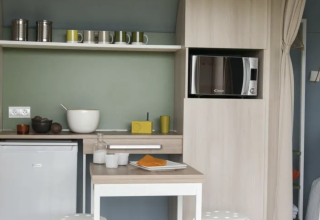 Ontsnap aan de rust van het platteland in deze gezellige glamping met weids uitzicht over de velden. Geniet van een lichtrijke accommodatie van 16 m² met een rustige ligging en schaduwrijke plek, vlak bij de sanitaire voorzieningen. Slaap comfortabel in een aparte slaapkamer met een tweepersoonsbed (140 x 190) en fris bedlinnen. Bereid eenvoudige maaltijden in het compacte keukentje met koelkast, diepvriezer, kookplaat, microgolfoven en koffiezetapparaat. Ontspan op het privéterras van 7 m² met tuinmeubilair, ligstoel en parasol. De tent beschikt over een eigen parkeerplaats en is rook- en huisdiervrij. Ideaal voor twee personen die houden van eenvoud, natuur en stilte.