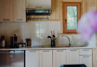 Het tiny house geeft op 28 m² een gezellige, praktische leefruimte, vlak bij het meer. Op één niveau heb je een uitnodigende leef- en eetruimte, een kitchenette (met oven, koelkast, Nespresso-apparaat, waterkoker, servies en bestek). Er zijn twee aparte slaapkamers: één met een tweepersoonsbed (1,4 x 1,9 m), één met een stapelbed (2 x 0,8 x 1,95 m) voor de kinderen. Je vindt er verder een badkamer met douche, een apart toilet en een fijn terras vlak voor de deur.