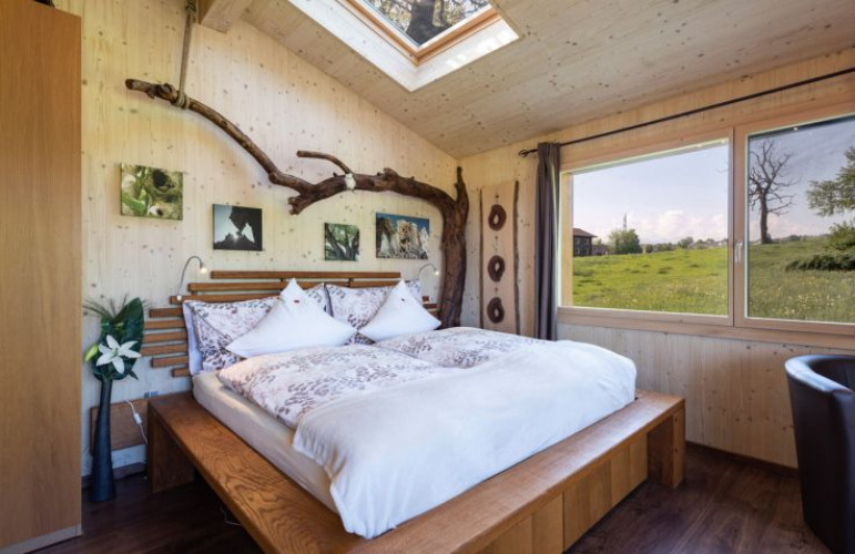 Het Wurzelbaumhaus is met zorg ingericht over 20 m² en staat drie meter boven de grond. Dankzij het exclusieve interieur en de vloerverwarming op houtsnippers geniet je er van een knusse sfeer. Duurzaamheid is hier belangrijk: het boomhuis wordt verwarmd met houtsnippers uit het eigen bos, drinkwater komt uit eigen bron of grondwater en afvalwater wordt hergebruikt als meststof op de omliggende velden. Je vindt er een massief houten bed en een badkamer met douche en toilet. Op het balkon met loungebanken geniet je van het uitzicht over het Sempachermeer en de groene omgeving. Ontbijtproducten komen van de eigen boerderij, uit de buurt of zijn bio-kwaliteit. ’s Ochtends wordt het brood vers gebracht via een mandlift. Op 15 minuten wandelen ligt er een typisch Zwitsers en een Italiaans restaurant. Je krijgt ook een unieke inkijk in het boerderijleven.