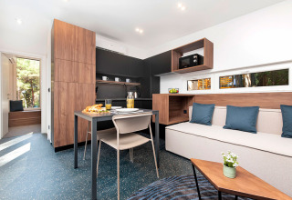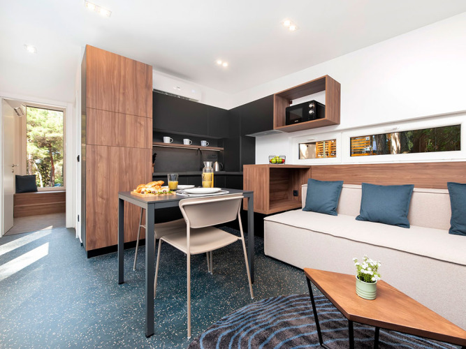 Ontdek de serene charme van Porton Nature Hideouts, een glampingcamping verscholen onder hoge dennen aan de Istrische kust in Kroatië. Geniet van moderne, modulaire mobilehomes, sommige met privézwembad, die naadloos opgaan in de natuur. Ontspan op je ruime privéterras en laat je meevoeren door de rustige bosomgeving. Op korte wandelafstand vind je een kiezel- en betegeld strand, waar je verfrissende drankjes kunt halen aan de strandbar. Zin in actie? Beachvolleybal, fietsen en duiklessen staan op het programma. In het restaurant ter plaatse proef je zowel lokale als internationale gerechten. Of je nu op zoek bent naar pure rust of een vleugje avontuur: Porton staat garant voor een natuurvakantie op slechts enkele minuten van het gezellige Rovinj.