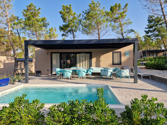 Ontdek Aminess Style Camping Avalona Resort, een uitzonderlijke glampingbestemming op het schilderachtige eiland Pag, Kroatië. Genesteld in een pijnboombos, pal aan de kristalheldere Adriatische Zee, weet het resort moeiteloos natuurlijke schoonheid te combineren met moderne luxe. Geniet van ultramoderne glamping lodges met overdekte terrassen, privézwembaden en adembenemend zeezicht. Gezinnen zullen het ruime waterpark met kleurrijke glijbanen, splashzones en kinderbaden zeker waarderen, terwijl dagelijkse animatie en een miniclub de kinderen volop bezighouden. Het resort beschikt over een restaurant ter plaatse waar je verse mediterrane gerechten kunt proeven in een eigentijds kader, fitnessfaciliteiten, minigolf en fietsverhuur voor actieve gasten. Dankzij huisdiervriendelijke voorzieningen en gratis wifi is deze glampingplek de garantie op ontspanning, comfort en avontuur voor jong en oud.