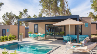 Ontdek Aminess Style Camping Avalona Resort, een uitzonderlijke glampingbestemming op het schilderachtige eiland Pag, Kroatië. Genesteld in een pijnboombos, pal aan de kristalheldere Adriatische Zee, weet het resort moeiteloos natuurlijke schoonheid te combineren met moderne luxe. Geniet van ultramoderne glamping lodges met overdekte terrassen, privézwembaden en adembenemend zeezicht. Gezinnen zullen het ruime waterpark met kleurrijke glijbanen, splashzones en kinderbaden zeker waarderen, terwijl dagelijkse animatie en een miniclub de kinderen volop bezighouden. Het resort beschikt over een restaurant ter plaatse waar je verse mediterrane gerechten kunt proeven in een eigentijds kader, fitnessfaciliteiten, minigolf en fietsverhuur voor actieve gasten. Dankzij huisdiervriendelijke voorzieningen en gratis wifi is deze glampingplek de garantie op ontspanning, comfort en avontuur voor jong en oud.