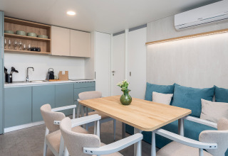 De Premium Holiday Home is een comfortabele accommodatie van 33 m², ideaal voor gezinnen of kleine groepen, geschikt voor maximaal 5 volwassenen of 4 volwassenen en 2 kinderen. Er zijn twee slaapkamers: één met een tweepersoonsbed en één met enkele bedden, en twee badkamers met douches, zodat iedereen kan genieten van comfort en de nodige privacy. De woonkamer beschikt over een volledig uitgeruste keuken met moderne toestellen zoals een vaatwasser, Nespresso- en filterkoffiemachine en een waterkoker, waardoor koken kinderspel wordt.