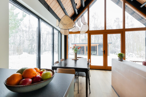 Verblijf in een moderne, vrijstaande vakantiewoning omgeven door groen, op een ruim perceel aan de rand van het park. De open keuken is uitgerust met alles voor een zorgeloos verblijf: inductievuur, Quooker, oven, microgolfoven, vaatwasmachine en een Nespresso met melkopschuimer. Aan de eettafel kan je genieten van lange diners of gezellige spelletjesavonden, terwijl de zithoek met smart-tv, soundbar en houtkachel uitnodigt om helemaal tot rust te komen. Via de openslaande deuren stap je zo de tuin in, waar je beschutte plekjes vindt onder de ruime overkapping met loungeset, of verkoeling zoekt in de schaduwrijke zones. Voor ultieme ontspanning is er een elektrische Finse sauna geschikt voor 4 personen. Je kan parkeren op het eigen terrein, met laadpaal voor elektrische wagens. Ideaal voor gezinnen of vriendengroepen tot 6 personen die rust, luxe en natuur willen combineren.