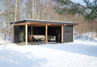 - Open terras met tuinmeubilair en barbecue aan de bosrand