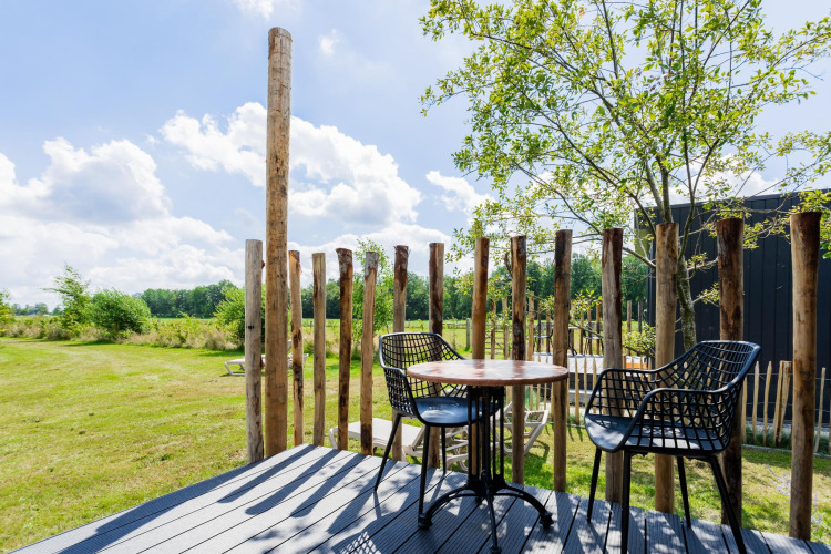Ontsnap aan de drukte en adem diep in op het zonnige vlonderterras, uitkijkend over de vijver. Deze stijlvolle tiny houses vlak bij ’t Nije Hemelriek bieden comfort en rust.