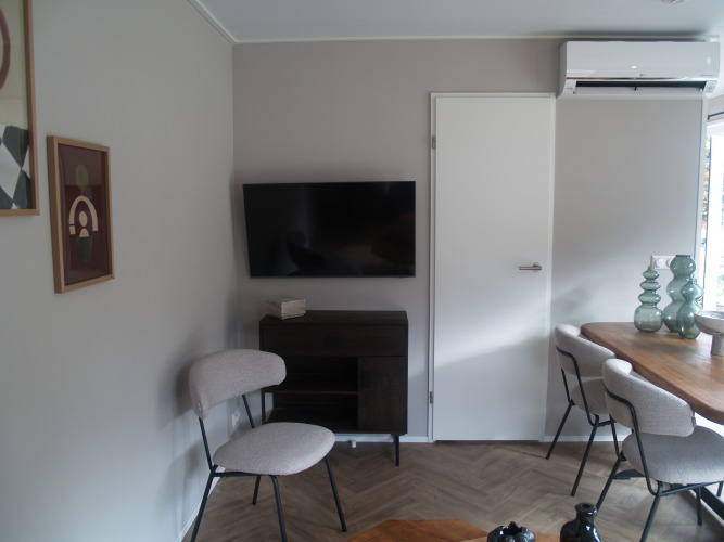 - Gelijkvloerse lodge met plaats voor 5 personen