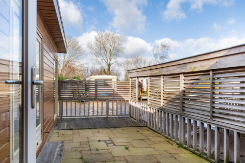 Buiten komt deze plek écht tot zijn recht. Je hebt een eigen drijvend privéterras met tuinmeubelen, ideaal om te genieten van de zon, ontbijt aan het water of samen te barbecueën. Het uitzicht over het water is breed en rustig, zonder drukte of verkeer – enkel boten, lucht en vogels.
