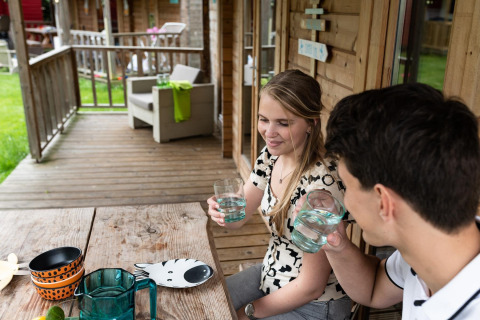 - Je logeert in een houten huisje met een dak van tentzeil (niet geïsoleerd).