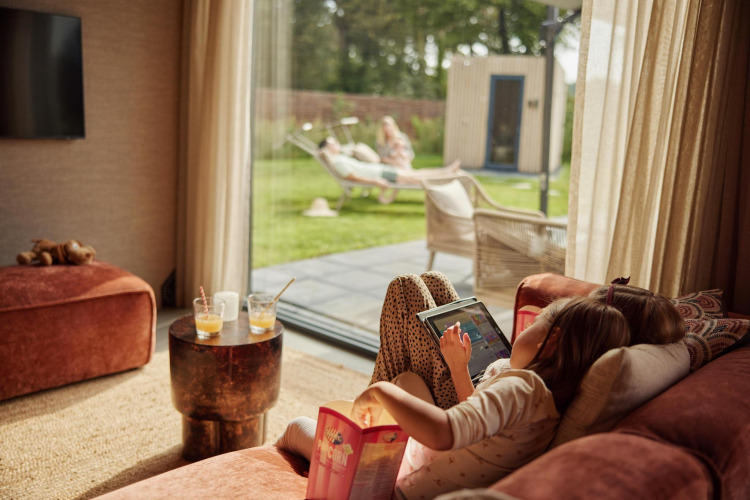 De Unbrick Model 4 is een vakantiewoning met meer voorzieningen dan je kunt bedenken; alle twee de slaapkamers hebben een eigen badkamer, de woning is voorzien van een luxe designkeuken met gevulde wijnklimaatkast, M-line bedden met zelfgekozen kussens, Nespresso Vertuo machine, duurzaam designmeubilair, hoogwaardige domotica, klimaatregeling en is ook nog eens ontzettend ruim opgezet. Je privézwembad is jaarrond verwarmd, genieten dus! Je kunt de woning precies instellen naar jouw stemming. Dimlichten en zwoele muziek of liever alles open en de natuur naar binnen halen - alles kan met een druk op de knop.