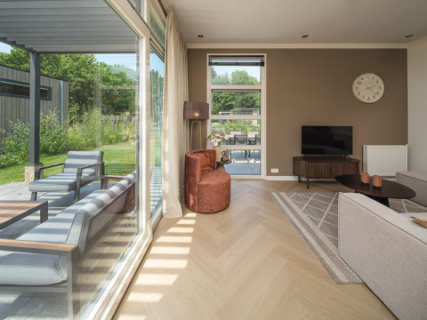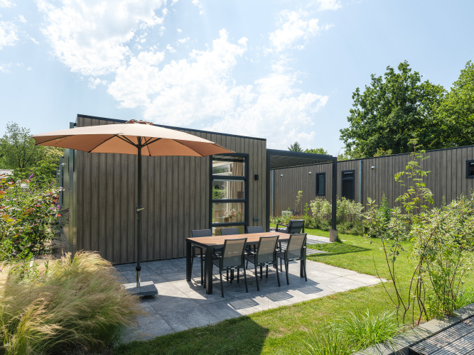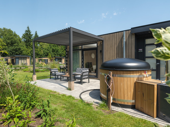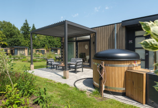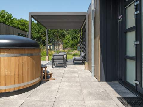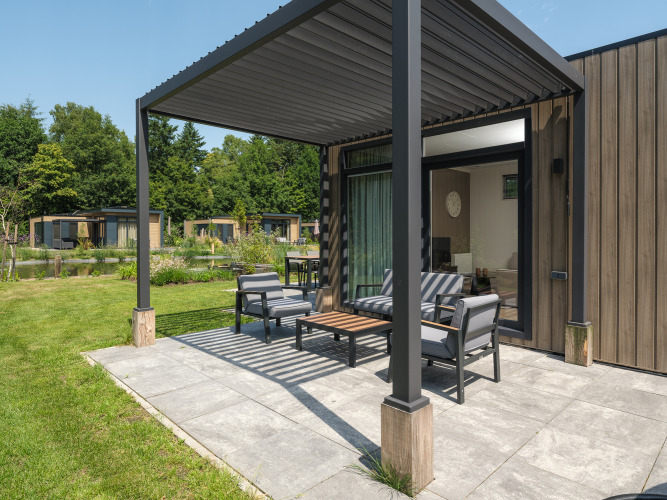 De Batenburg Deluxe biedt extra comfort met airconditioning die zowel koelt als verwarmt. Buiten wacht een luxe pergola, ideaal om te ontspannen in de schaduw of beschut tegen een regenbui.