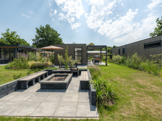 De buitenlounge met haard maakt elke avond bijzonder. Geniet van een drankje bij het knisperende vuur of ontspan overdag in een warme en sfeervolle setting. Zelfs op frisse avonden blijf je heerlijk buiten, terwijl de haard zorgt voor extra gezelligheid. Dit is vakantie op zijn best!