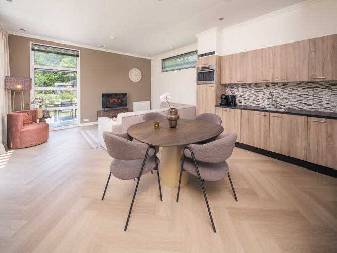 Prachtig park, mooi aangelegd. We hadden een heerlijk huis. Een sfeervolle tiny lodge met een hot tub. Vanuit het huis loop je zo het prachtige bos in. Het park is nog in ontwikkeling, maar het restaurant is net klaar. Heel gezellig ingericht. Erg lekker gegeten! Grote porties, goede wijn en lekker bier. Wat we ook erg fijn vonden was de goede service. Een schuifdeur was losgeraakt, we melden het via de app en binnen no time stond er iemand voor de deur om het te fixen. We komen graag weer terug!