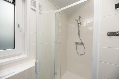 Naast de stijlvolle inrichting biedt de lodge ook extra comfort met airconditioning, die zowel kan verwarmen als koelen, voor een optimaal binnenklimaat in elk seizoen. Buiten geniet je van de luxe pergola, zodat je zelfs op warme dagen of tijdens een lichte regenbui heerlijk buiten kunt zitten.