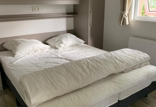 Dit ruime chalet van ongeveer 40 m² biedt extra comfort en een gezellige sfeer, ideaal voor een ontspannen verblijf. De leefruimte is ingericht met een zithoek en eettafel, en sluit aan op een volledig uitgeruste keuken met onder meer een vaatwasser, oven/microgolf, koffiezet en kookfornuis. Dankzij de centrale verwarming is het chalet het hele jaar door aangenaam. De slaapkamers zijn praktisch ingericht met een tweepersoonsbed en een stapelbed.